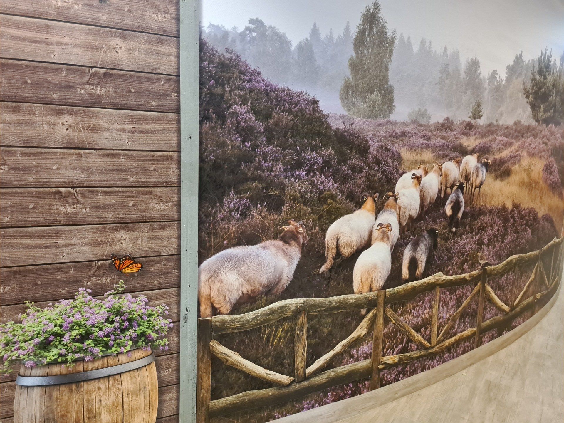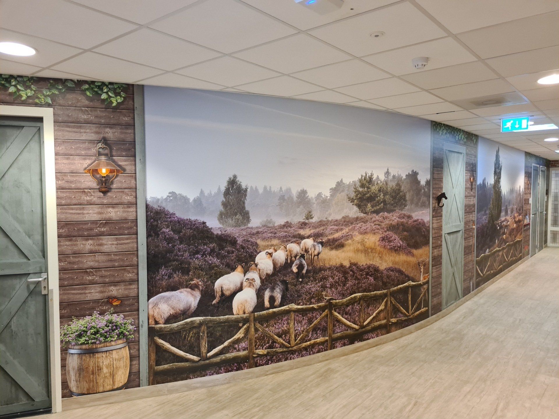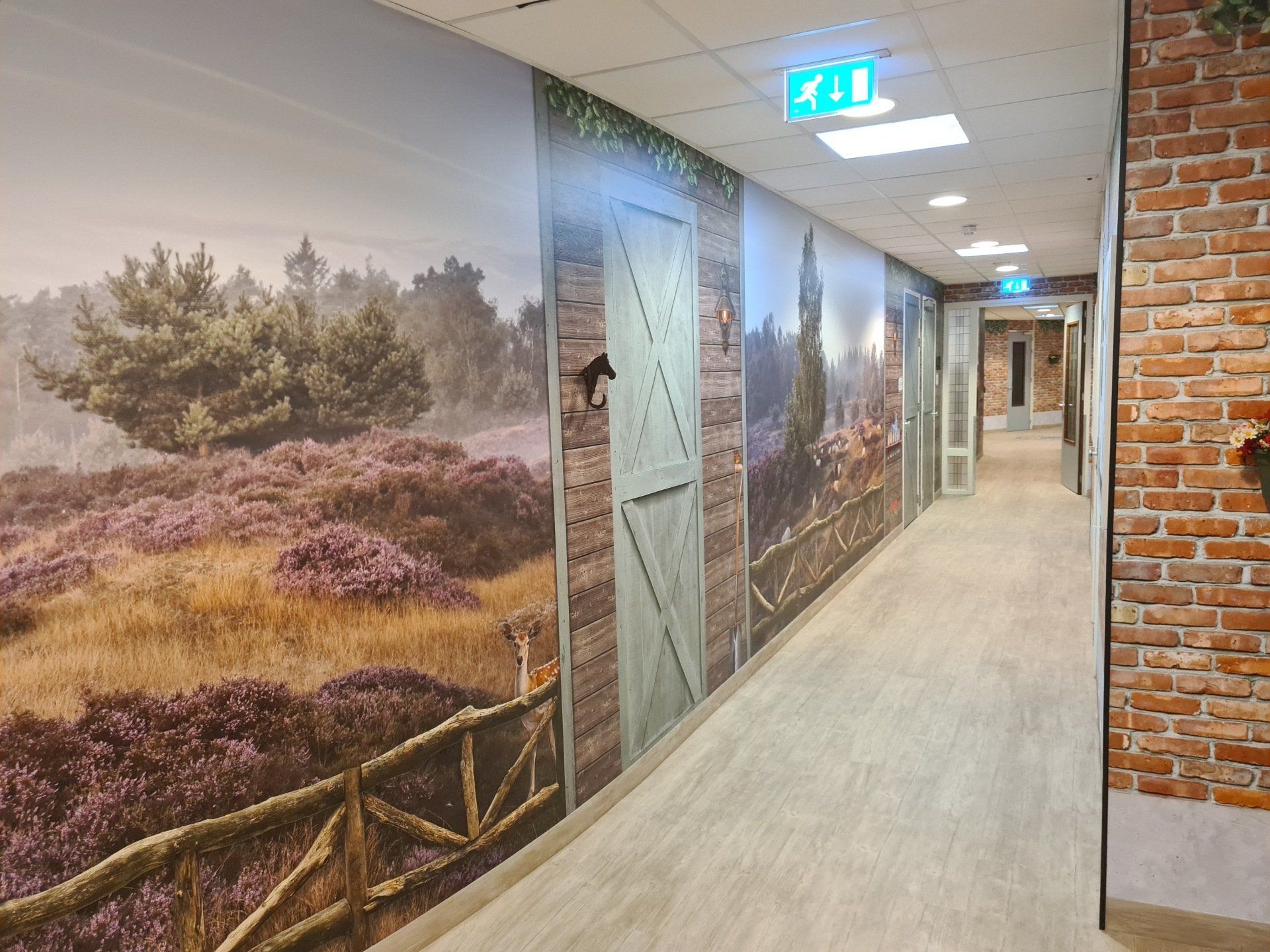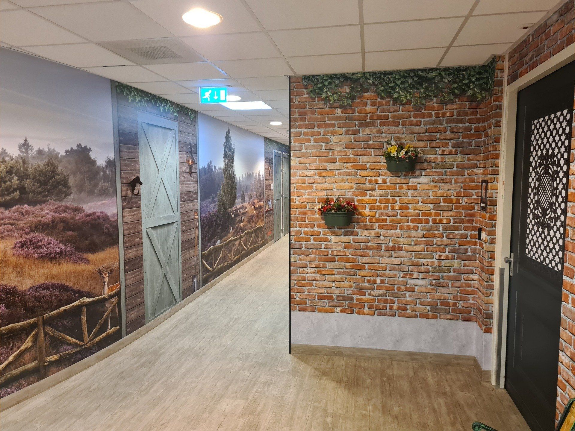 Aan de kant van de woningen hebben wij gebruik gemaakt van stenenmuren, zodat dit de straat kant is van de afdeling. Aan de overzijde kunnen de bewoners genieten van een prachtig uitzicht over de heide.