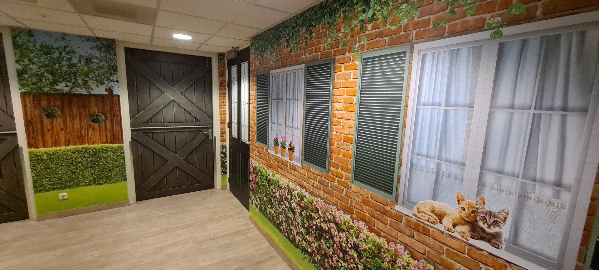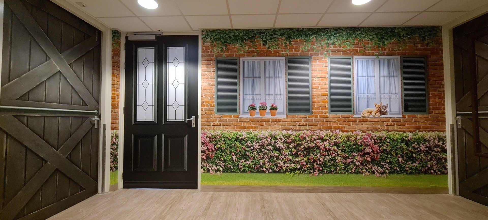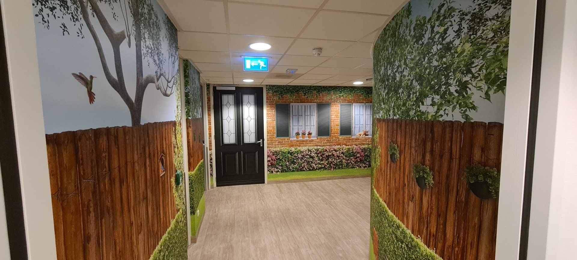 De entreehal van de dagbesteding belevingsgericht aangekleed.