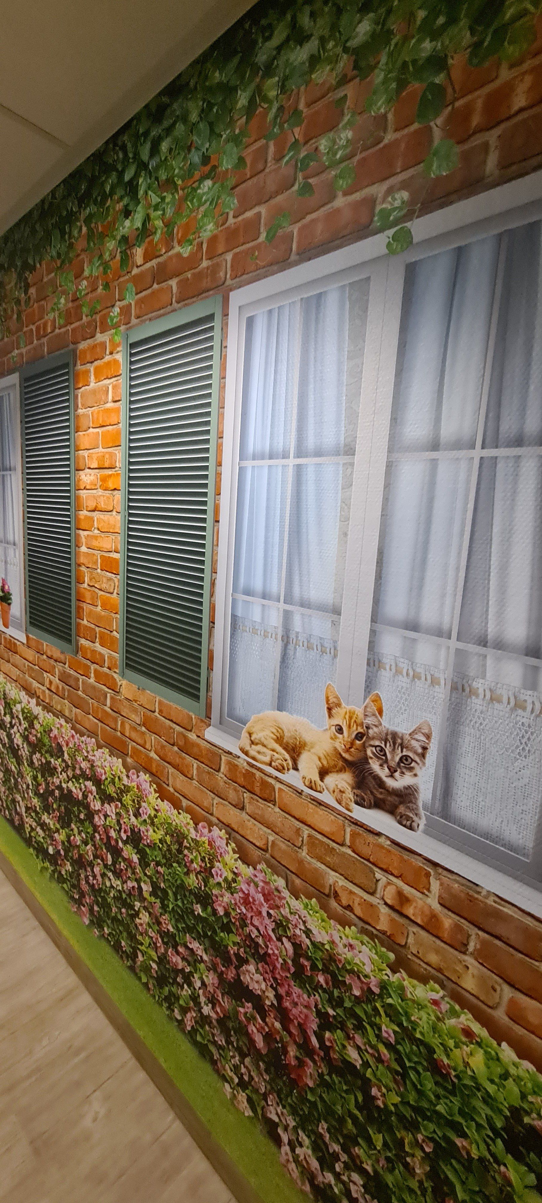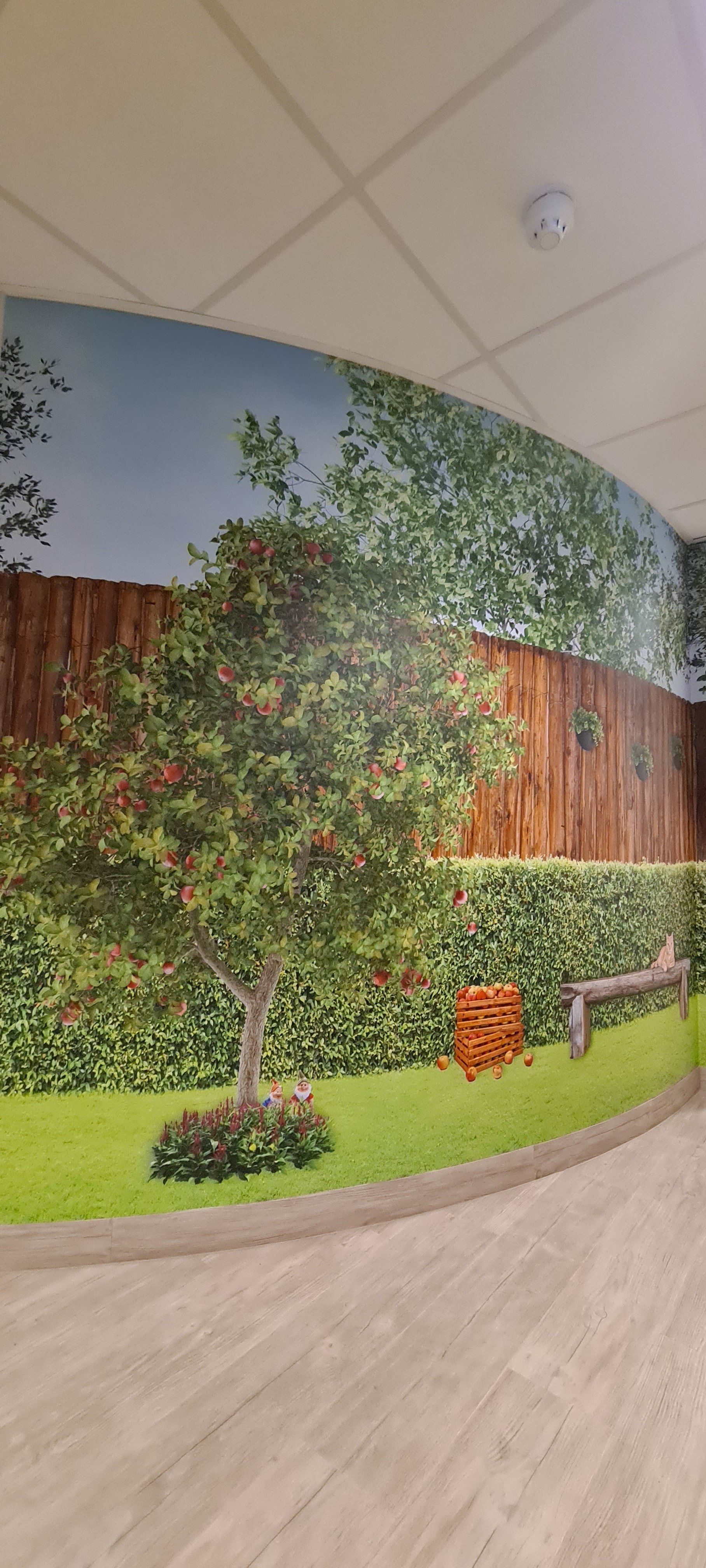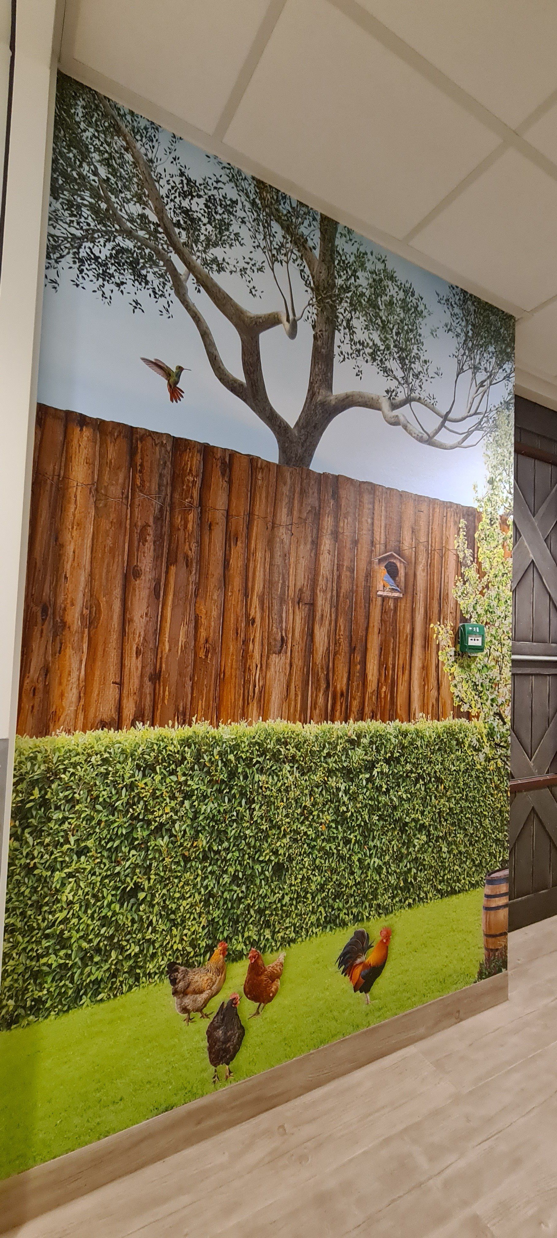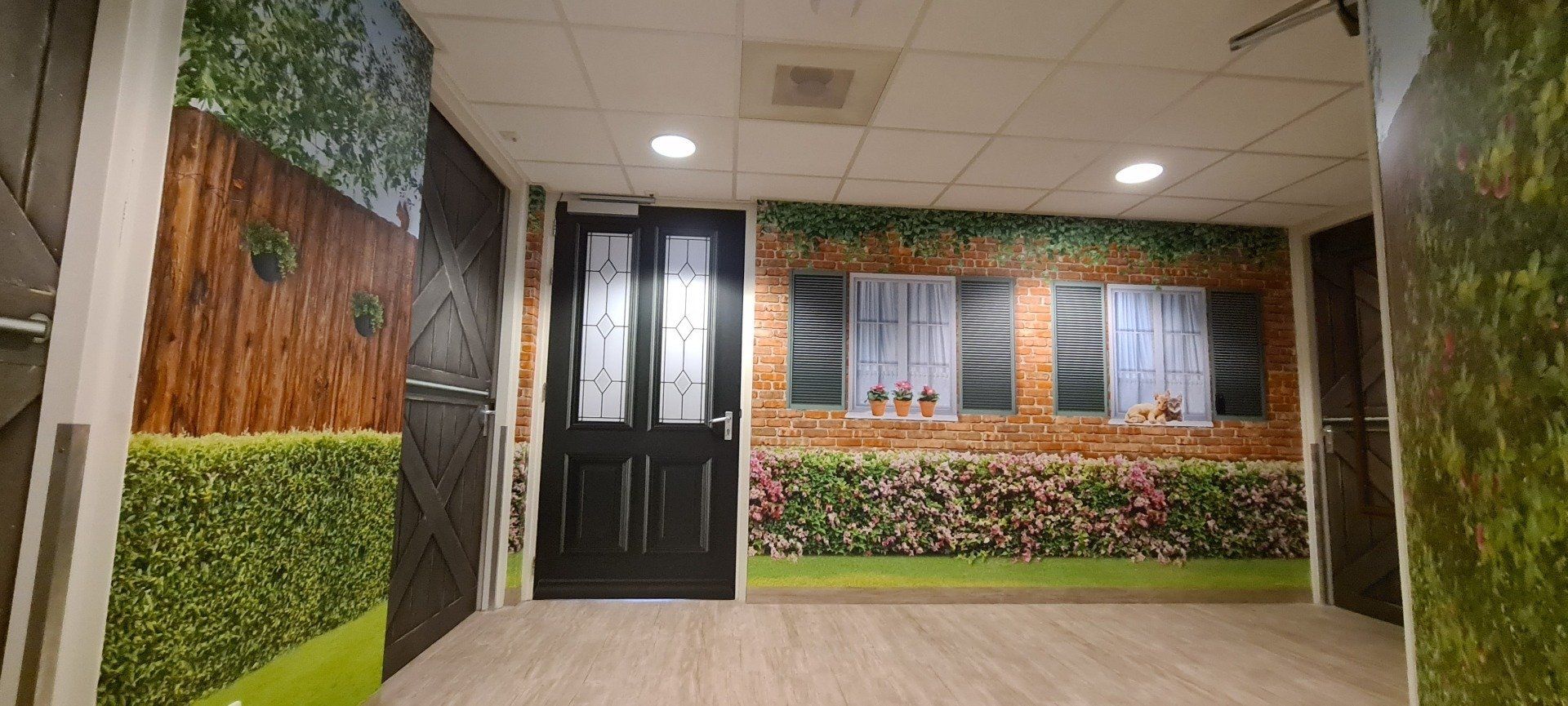De entreehal van de dagbesteding belevingsgericht aangekleed.