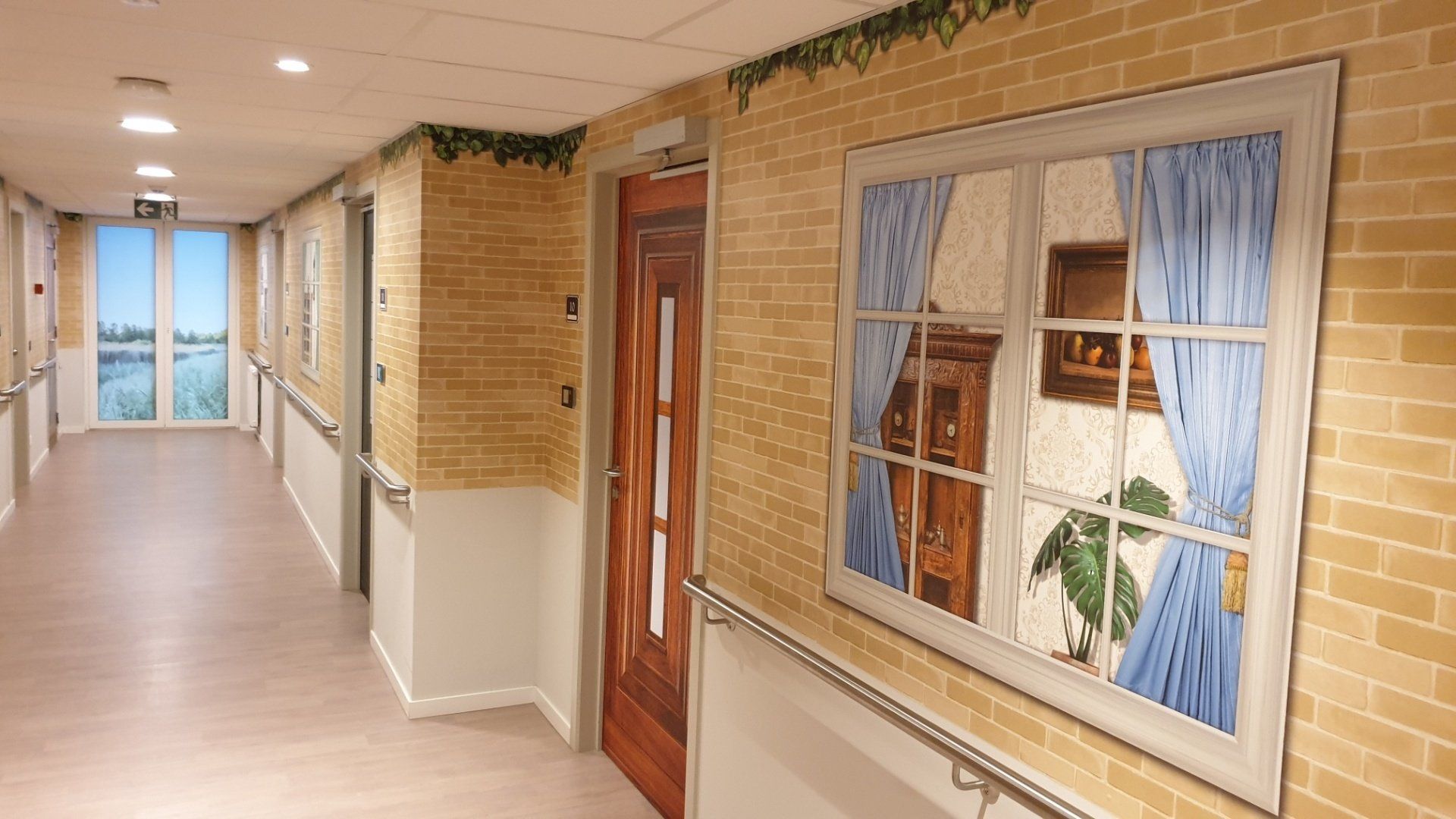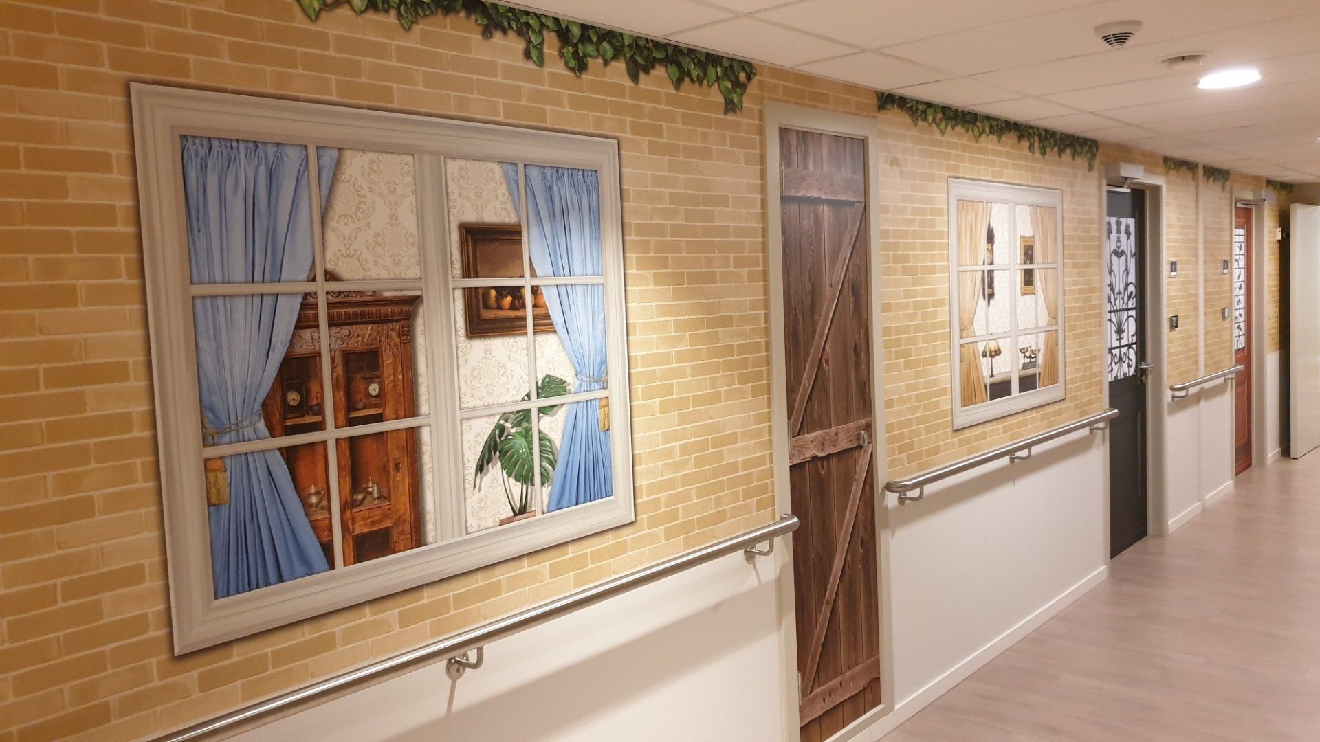 Bij Home Elisabeth in Sint-Truiden kwamen wij op een afdeling waar het gangpad van de bewonerskamers voor onrust zorgde. Het was een lange, smalle witte gang, die wij belevingsgericht hebben aangekleed.